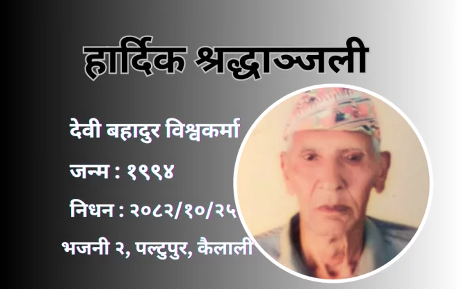कैलाली । श्रमिक समुदाय मोर्चा नेपालका केन्द्रीय सचिवालय सदस्य मधुसूदन सी.का बुवाप्रति मोर्चाले श्रद्धाञ्जली अर्पण गरेको छ । मोर्चाले आज शोक वक्तव्यमार्फत श्रद्धाञ्जली अर्पण गरेको हो मोर्चाका अध्यक्ष रामलाल सी.द्वारा हस्ताक्षरित वक्तव्यमा शोकाकुल परिवार र आफन्तप्रति समवेदना समेत प्रकट गरिएको छ । मोर्चाका केन्द्रीय सचिवालय सदस्य...