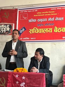 काठमाडौं । श्रमिक समुदाय मोर्चा नेपाल, केन्द्रीय सचिवालयको बैठक नेपाल कम्युनिस्ट पार्टीका महासचिव विप्लव सीको प्रमुख आतिथ्यतामा आज काठमाडौंमा सम्पन्न भएको छ । बैठकमा उपस्थित मोर्चाका सचिवालय सदस्यहरुलाई विप्लव सीले प्रशिक्षण दिनुभएको छ ।