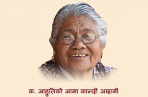आहुतिकी आमा कान्छी अछामीको चन्द्रागिरी १४, नयाँ नैकाप स्थित आफ्नै घरमा १९ गते बिहान ९० बर्षको उमेरमा निधन भएको हो । एक बर्ष अगाडिबाट अक्सिजन कमीका कारण आमालाई कृत्रिम अक्सिजनको व्यवस्थापन गरेर घरमै राखिएको थियोे ।